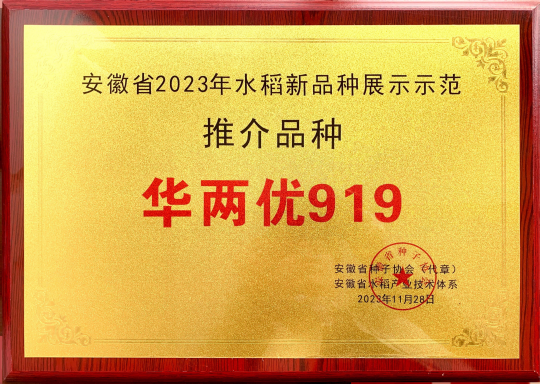 安徽省2023年水稻新品種展示示范推薦品種-華兩優919