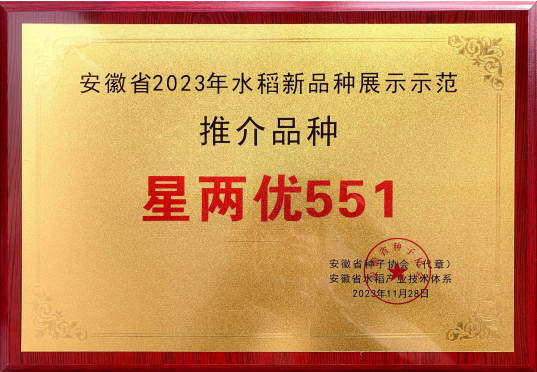 安徽省2023年水稻新品種展示示范推薦品種-星兩優551